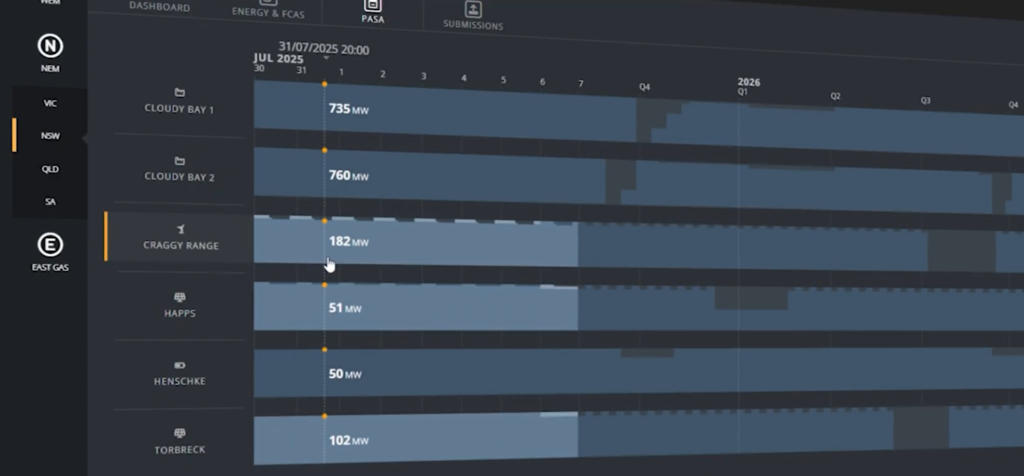The Horus NEM Trading System includes a PASA post-box for viewing and creating PASA submissions. Users are able to toggle between ST PASA (30-minute resolution) and MT PASA (daily resolution).